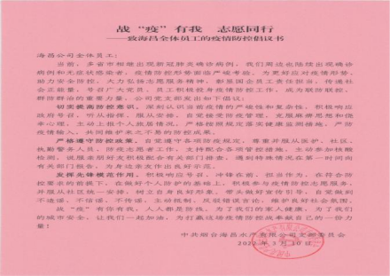 突如其來的疫情打破了人們正常的生活節(jié)奏。為打贏這場沒有硝煙的戰(zhàn)爭,海昌公司黨支部第一時(shí)間發(fā)出《戰(zhàn)役有我,志愿同行》的倡議書,號(hào)召全體職工積極響應(yīng)號(hào)召,沖鋒在前、勇當(dāng)作為。