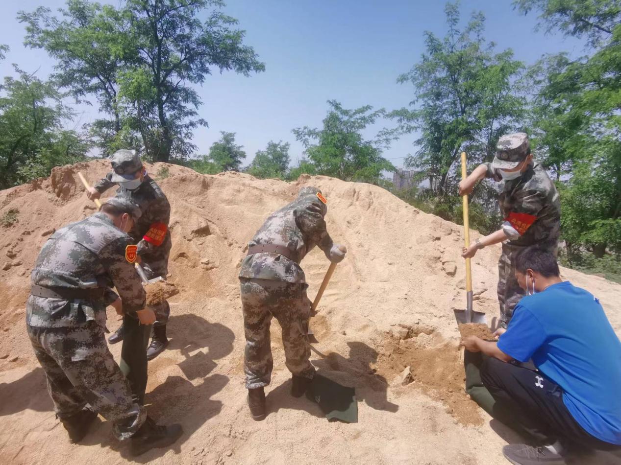 演練中,隊(duì)員們先是參加了防范塘水外溢的演練,演練背景為長時(shí)間暴雨導(dǎo)致小區(qū)外池塘蓄水過多而外溢至小區(qū)內(nèi),隊(duì)員們迅速裝填幾十個(gè)防汛沙袋并壘成一道防水墻,阻止了水流進(jìn)入小區(qū)。