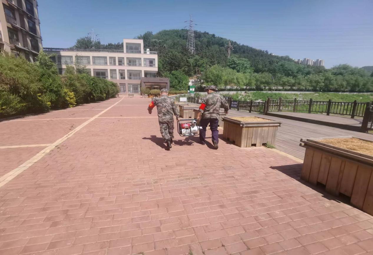 隨后又開展了抽水演練,隊(duì)員們?cè)诮值廊藛T帶領(lǐng)下迅速展開抽水設(shè)備,搭建抽水通道,將溢入小區(qū)的“積水”排出去。
